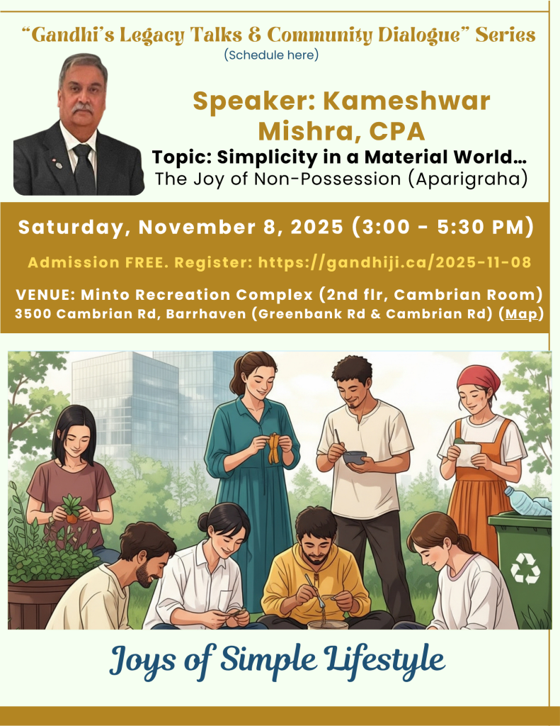 2025-11-08 Gandhi’s Legacy Talks – Kameshwar Mishra on "Simplicity in a Material World… The Joy of Non-Possession (Aparigraha)"